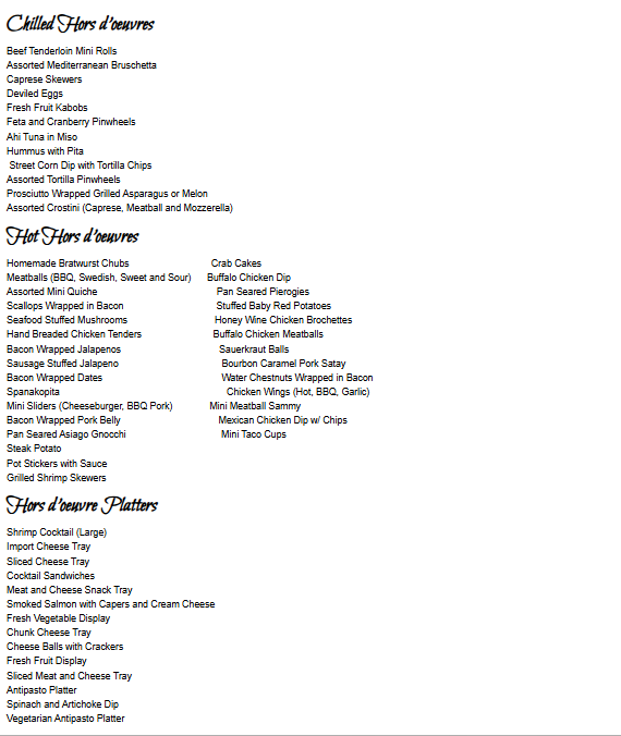 Hors D'oeuvres Menu