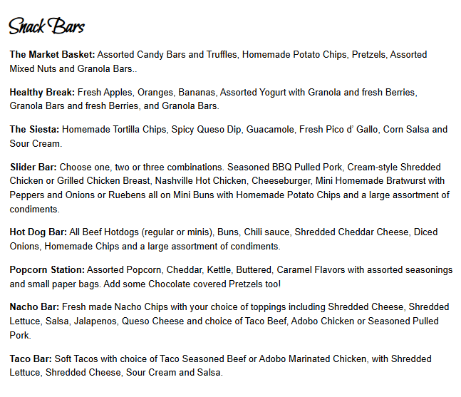 Snack Bar Menu